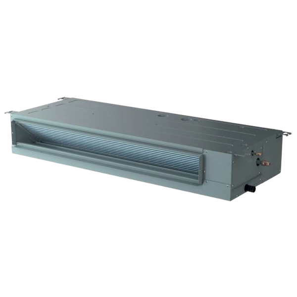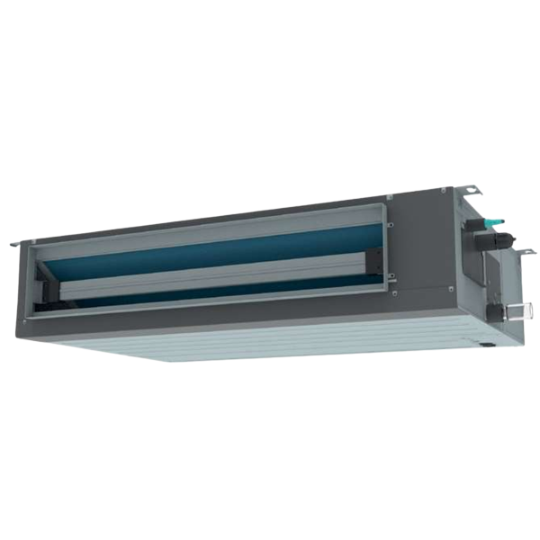 Ducto de media presión estática, diseño delgado de solo 245mm permitiendo la instalación incluso en entre techos y espacios pequeños.