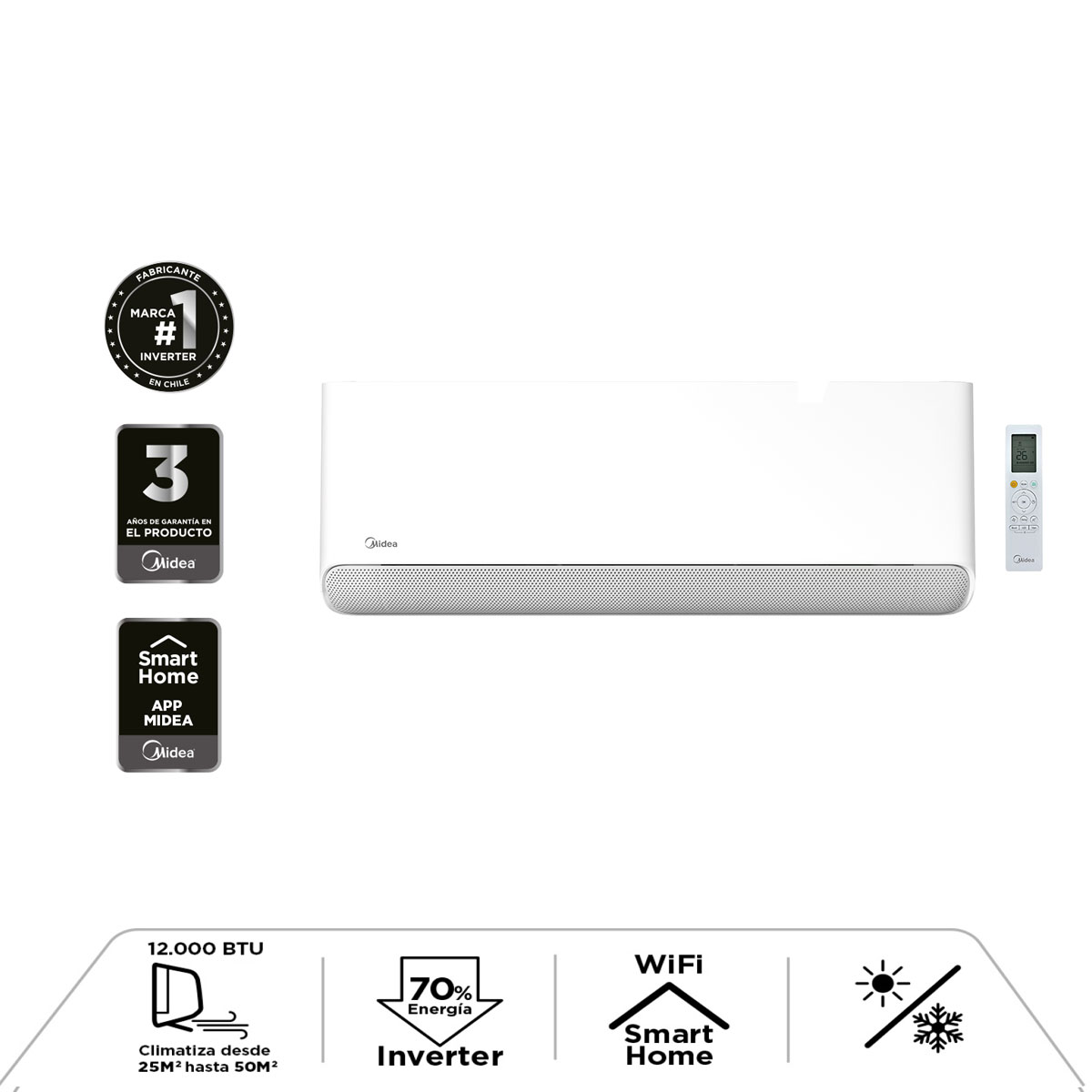 Split muro Inverter Xtreme Dura con capacidad de 24.000 BTU, permite conexión Wifi para controlar la temperatura desde la aplicación Smart Home.